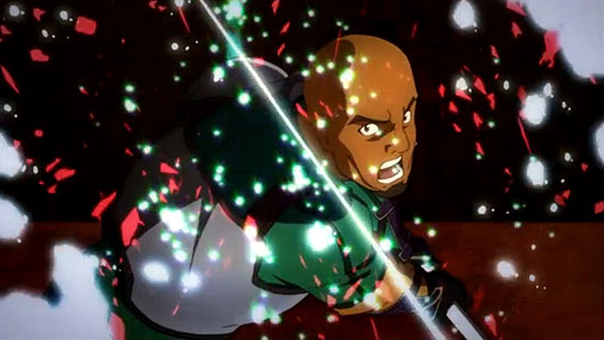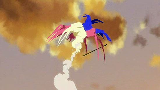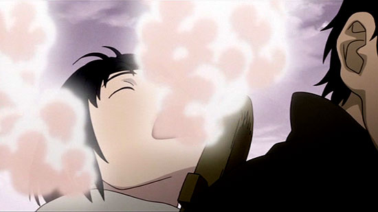 lines of slicing, flatness, and the sharp edge. Anime slices into one's sense